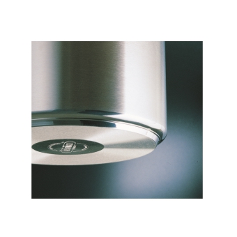 Ein dicker 8,8 mm-Spezial-Boden mit 6 mm Aluminiumkern verteilt und speichert die Hitze optimal, gibt sie gleichmäßig an das Kochgut weiter. Dies ist sehr angenehm zum Kochen, und energiesparend! Der Boden ist verkapselt, also auch seitlich ganz geschlossen, und damit absolut spülmaschinenfest.